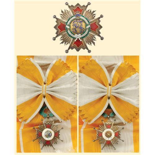 Grand Cross set; sash badge, silver gilt, both sides enamelled, with long complete sash; breast star, silver gilt, obverse partially enamelled, reverse with thin pin and two side hooks. A beautifull set in almost perfect condition