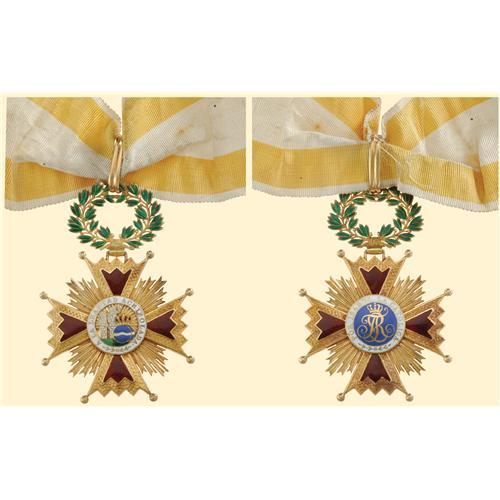 Commander`s Cross, neck badge, gold, both sides enamelled, obverse medallion with enamel painting, enamelled wreath above, original suspension loop and piece of old ribbon. Luxury high relief quality in near perfect condition!