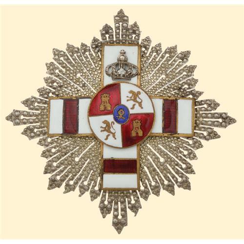 Grand Officer, breast star of the 3rd Class, for retired personnel from the Franco Period, silver, multipart construction, applications between the arms of the cross are missing, superimposed parts gilt and enamelled, reverse thin pin and two side hooks.