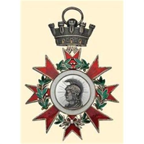 Knight's Decoration (Badge 2nd class). Breast Badge, silver partially gilt, averse enamelled, multiparts construction, mural crown on top with suspension ring (with illegible/French? hallmark). Excellent design and quality, very rare!