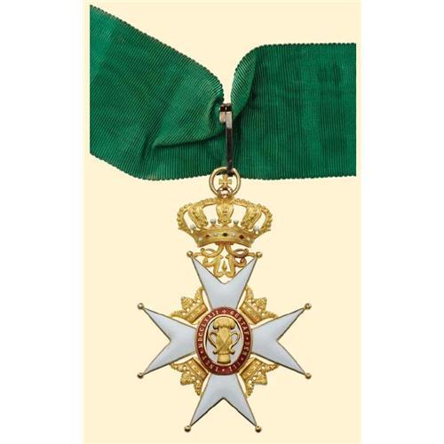 Commander's Badge in gold & enamel. With original suspension loop. Hallmarked for gold and manufacturer Carlman. With full neck ribbon. Extremely fine example of 19th century.