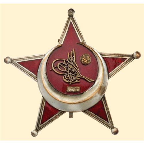 Breast Badge in metal or tombak-gilt & enamel. A "*" hallmark on the safety pin, nice luxury manufacture.