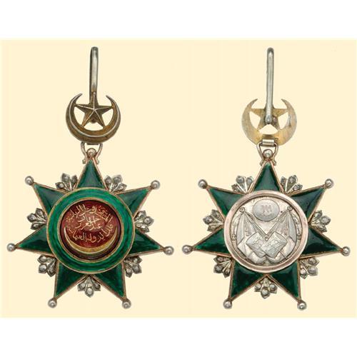 Commander's Decoration (3rd class), neck badge, silver, gold & enamel. Averse medallion with gold onlay, crescent & star above, with suspension loop. Of the highest quality.