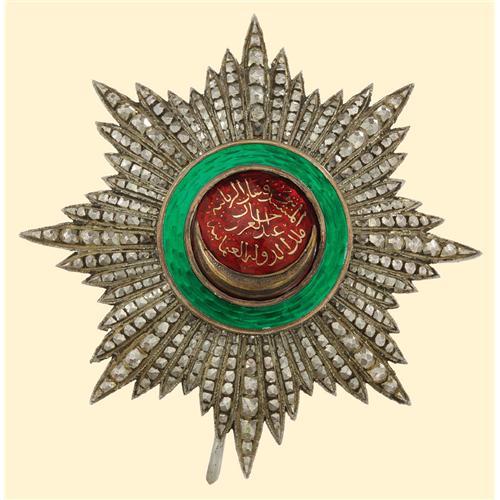 Grand Cross, breast star, silver brilliant cut, medallion enamelled, gilt and with gold inlay, with official Turkish mark, tapered pin and side hooks on reverse. Excellent old quality in very fine condition, very attractive!