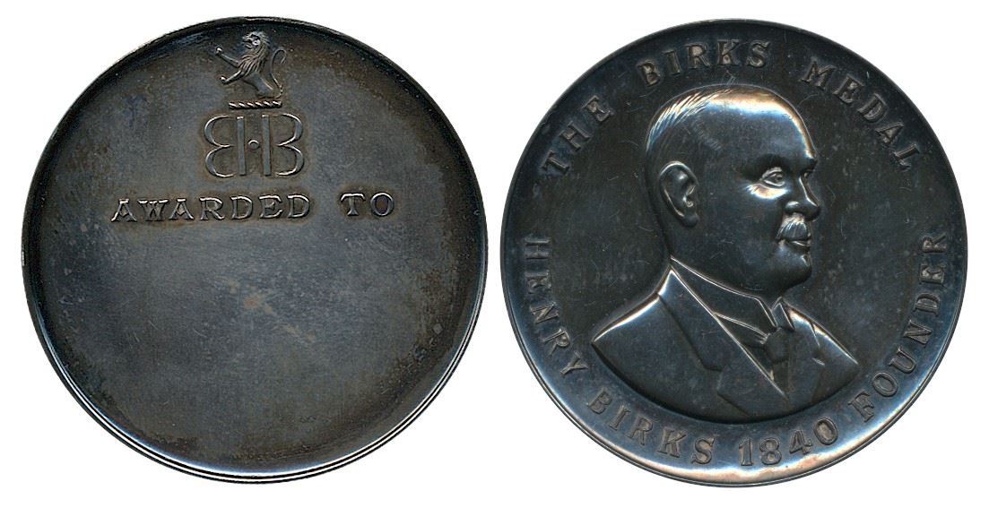 Medal; The Birks Medal - Henry Birks 1840 Founder, Unattributed issue. 4,4mm in diameter weighing 42gr, comes with original blue box.
