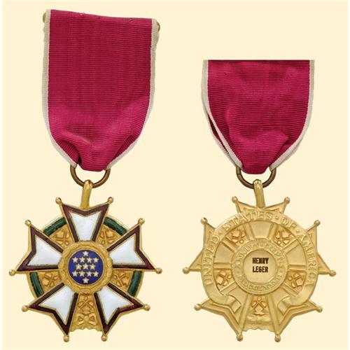 Legionnaire's Badge, breast badge, bronze-gilt & enamel. An early badge named to "Henry Leger". With original ribbon, with brooch bar.