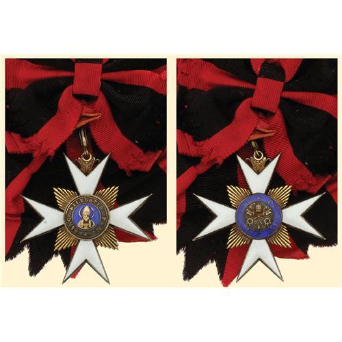 Grand Cross Sash Badge, silver gilt, both sides enamelled, maker`s mark "Tanfani - Bertarelli...Roma", original suspension loop and complete long sash. A beautifull order in perfect condition with patina!