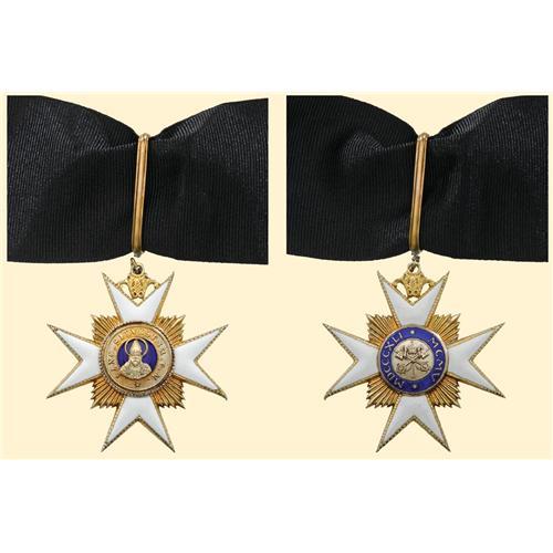 Commander's Badge in silver-gilt. Connection with the suspension loop is broken. Nice quality with a Holy Sepulchre black neck ribbon. One point slightly bent and a very tiny enamel chip there.