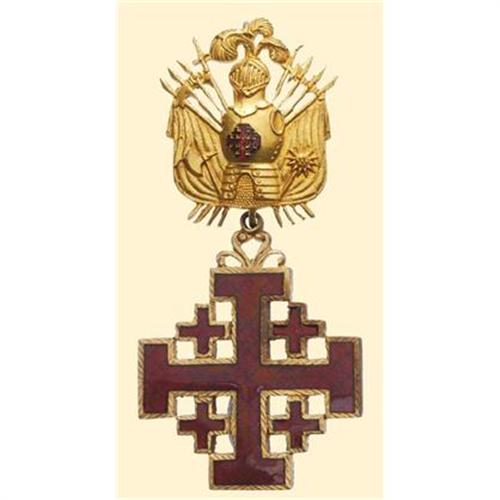 Knight's Cross; neck badge, bronze gilt, cross both sides enamelled, trophy - suspension with enamelled Jerusalem cross. Simple Italian quality in small size (38 x 80 mm).