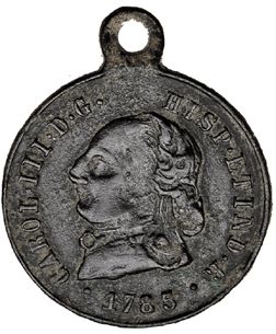 Medalla. 1785. Acuñada en bronce con los tipos y leyendas del escudo de Madrid, DV. Con su anilla. MBC+. Muy interesante.