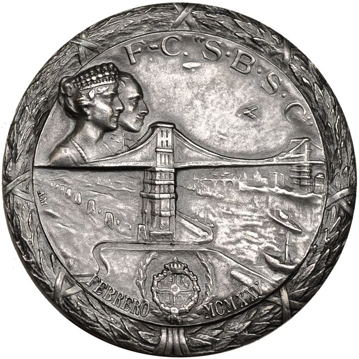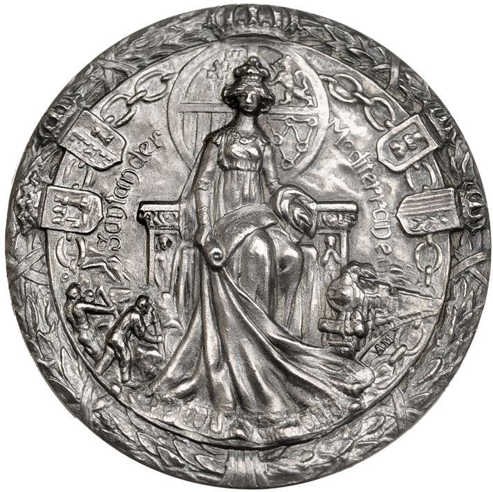 Medalla. 1925. Conmemora la inauguración del ferrocarril Santander-Mediterráneo (nunca llegó a concluirse). AR Ø 50mm. Grabador: AM. EBC.
