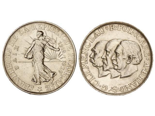 Medalla Módulo 20 Francos. - 1929. - AR. Clemenceau, Poincare y Briand. ESCASA. Gad-851. EBC. - -