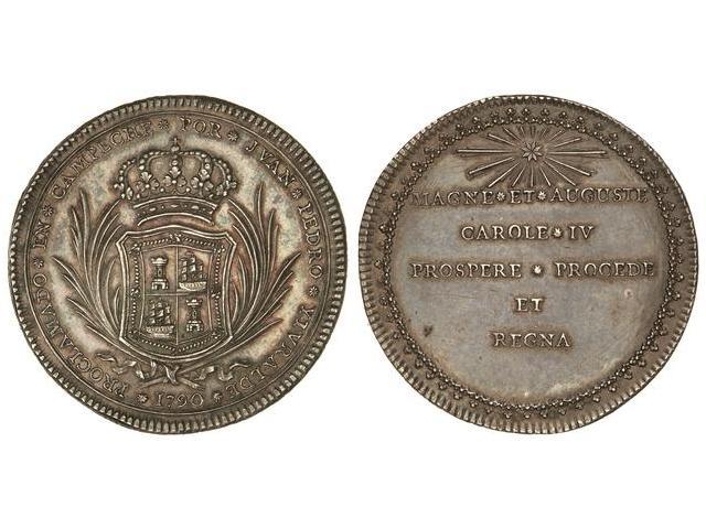 Medalla Proclamación. - 1790. - CAMPECHE. - AR. Ø 40 mm. Módulo 8 Reales. Pátina. ESCASA. He-122. EBC. - -
