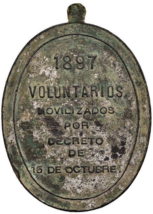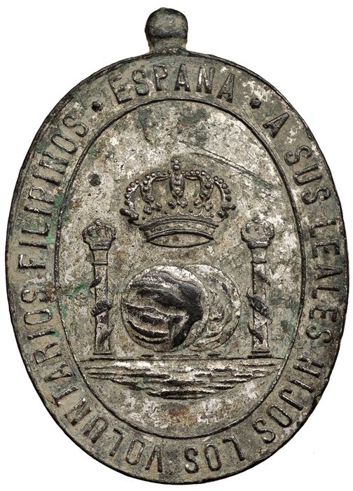 Medalla de distinción. 1897. VOLUNTARIOS FILIPINAS. Bronce plateado. G-774. Rayas en el anv. EBC-. Escasa.