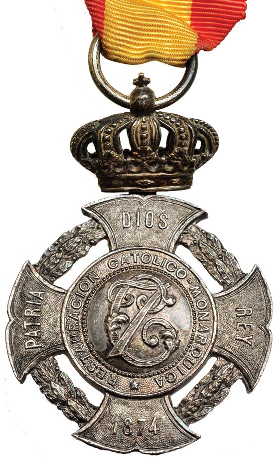 Medalla de distinción. DON CARLOS 1874. Plata. G-1043a. SC. Rara.