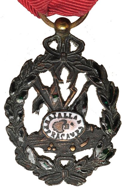 Medalla de distinción. Peracamps. Cobre esmaltado. Reverso liso. G-698 vta. Gran parte del esmalte perdido. MBC. Muy escasa.