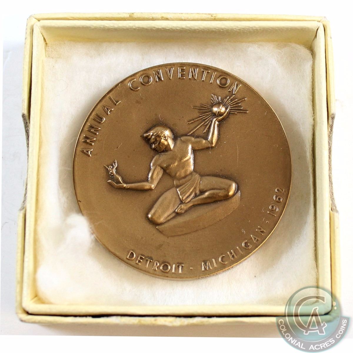 Medallion; 1962 American and Canadian Numismatic Associations Convention Held in Detroit, Michigan Commemorative Bronze Medallion. Comes in small box with info sheet.