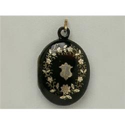 Tortoise shell with metal mounting, detachable locket, on the front side gold inlay, mid 19th century, gross weight: 12.1 g, in good condition.