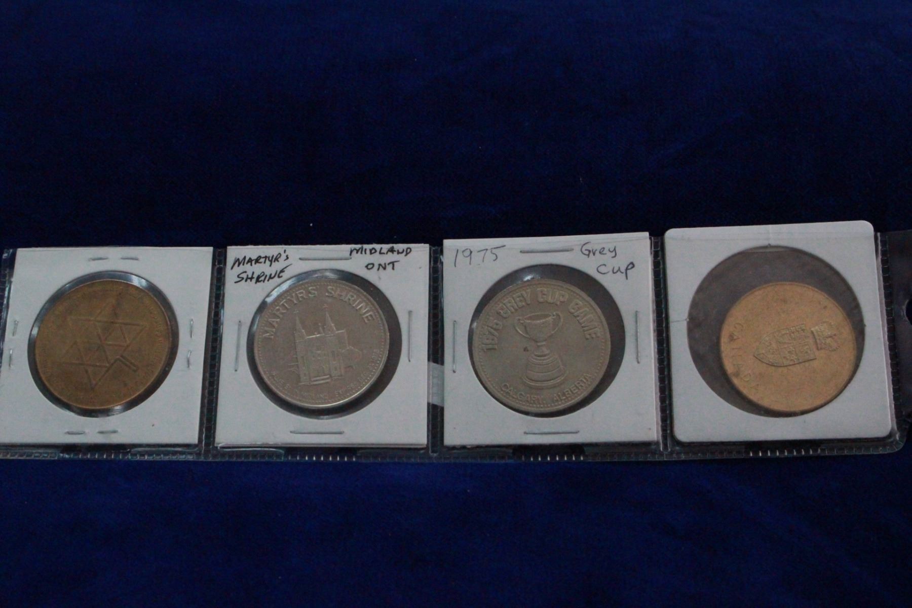 1967 Bronze Confederation; 1975 Calgary Centennial; 1978 Midland Ont. Centennial Dollar & 1967 TomBoy Store Token)