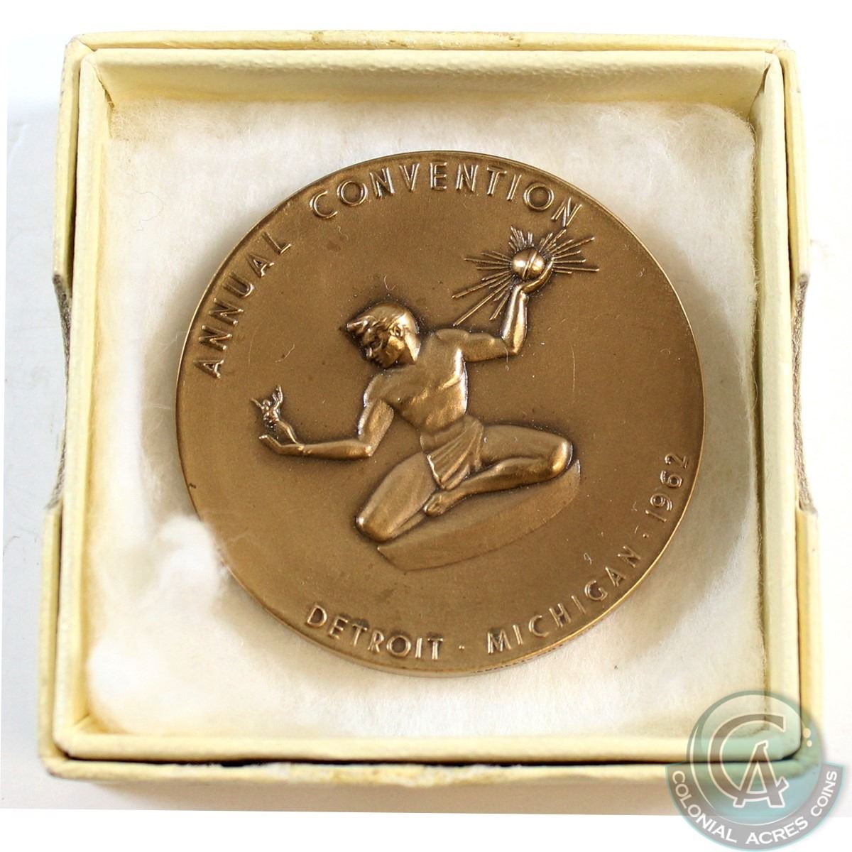 Medals; 1962 American and Canadian Numismatic Associations Convention Held in Detroit, Michigan Commemorative Bronze Medallion. Comes in small box with info sheet.