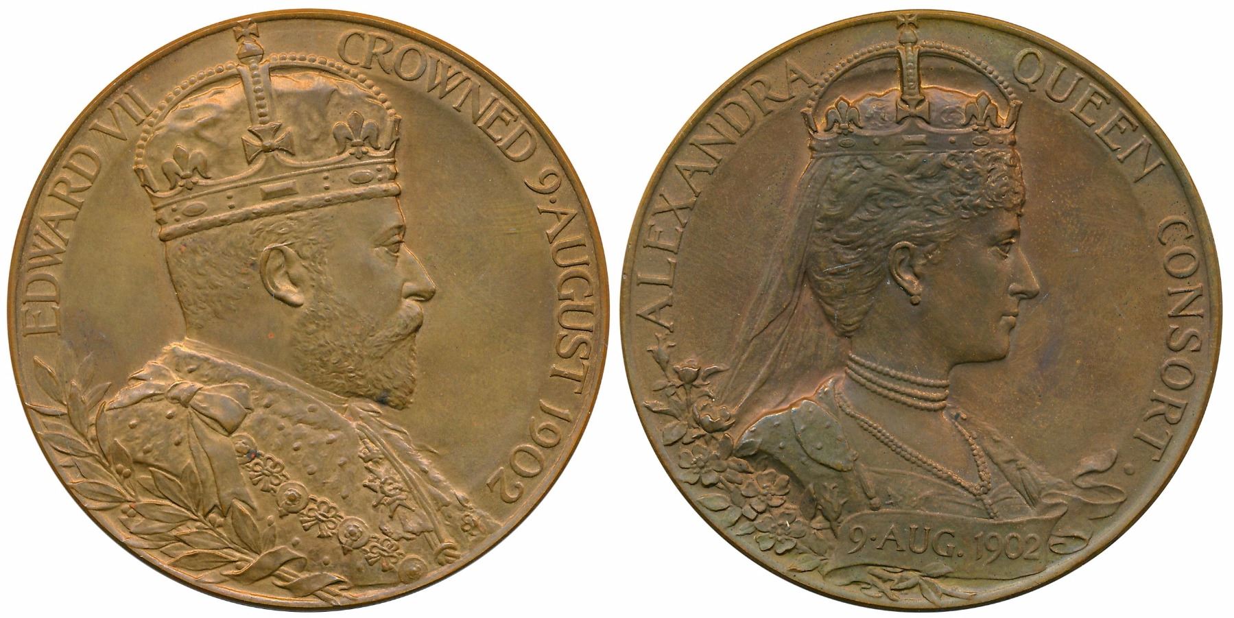 Edward VII, Coronation Medal, Bronze, 81.23g, 9 August 1902, Obv: Bust of the Emperor Edward VII to right, Rev: Bust of Queen Alexandra to right (Eimer# 1871a). Extremely fine+.