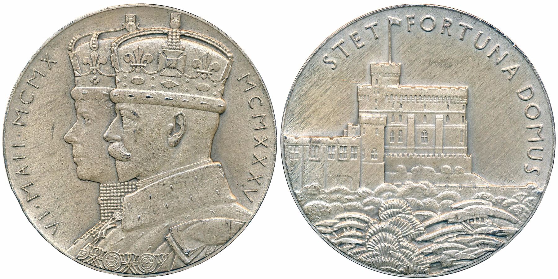 George V and Queen Mary, "Silver Jubilee Domus Medal 1910-1935", Silver, 84.26g, Obv: Conjoined busts of George V and Queen Mary, Rev: Windsor castle. With original box of issue. Very fine.