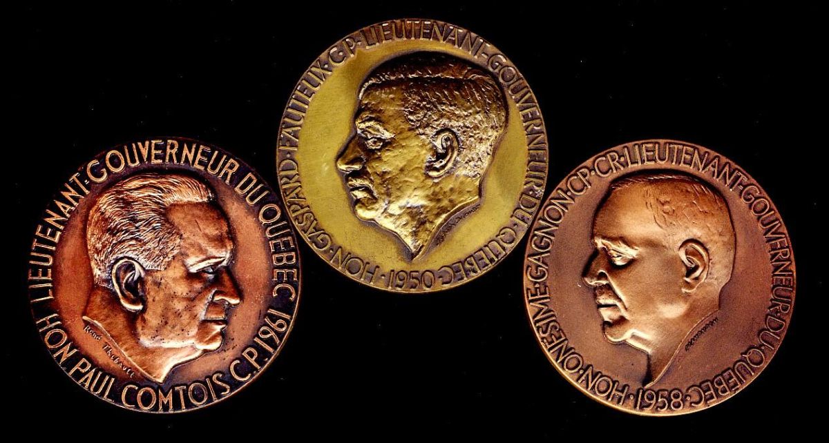 Medals, Lot includes 3 x different Lieutenant Governor of Quebec Medals, 1950, 1958 and 1961. Depicts Hon. Gaspard Fauteux, Hon. Onesime Gagnon and the Hon. Paul Comtois repectively.