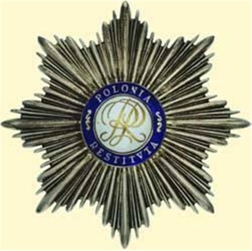 Breast Star - I. Type (1918); silver, superimposed medallion gilt and enamelled, diam.: 75 mm, version with profile on reverse, tapered pin and two side hooks, French swan-marks. Small signs of wearing, some patina!