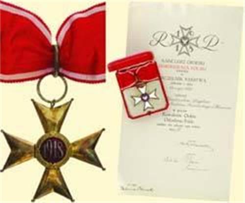 Commander's Cross - I. Type (1918); neck badge, bronze gilt, obverse enamelled, reverse medallion "1918" enamelled, with grooved ring and original suspension loop and ribbon; in original box of issue. Small signs of age and wearing!