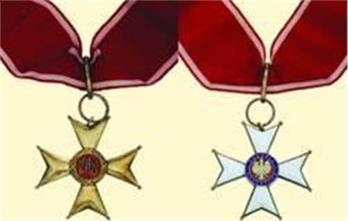 Commander's Cross - I. Type (1918); neck badge, silver gilt, obverse enamelled, reverse medallion "1918" enamelled, with grooved ring and original suspension loop and ribbon. Typical British "SPINK"-version with small signs of wearing, one small enamel damage on reverse.