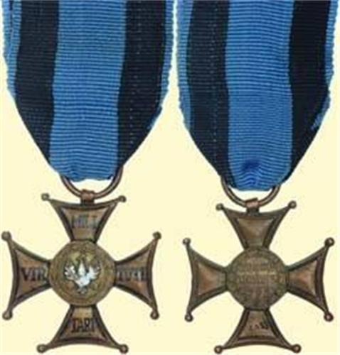 Golden Cross (4th class) - Type 1918-1939; breast badge, bronze partially enamelled, reverse with stamped number (2453), flat one part version, with large suspension ring and new ribbon. Significant signs of wearing, small enamel damages.