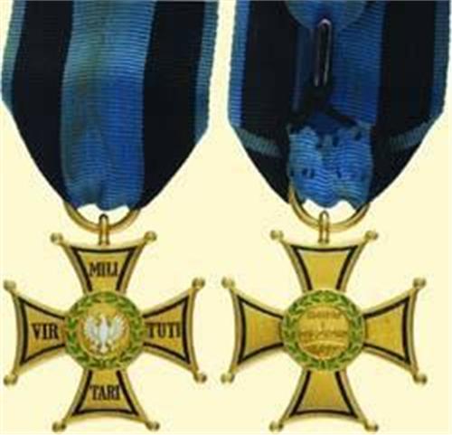 Golden Cross (4th class) - Type 1944; breast badge, gold (32,4 gramme, minimum 900 standard), partially enamelled, one part version, with strong suspension ring and old ribbon. Very fine solid quality of probably Soviet mint production, in very fine condition! These badges of gold were usually awarded to Soviet officers!
