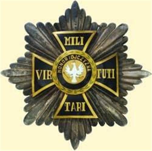 Grand Cross Breast Star; large flat breast star, thin metal corpus (tombak?) silver plated, superimposed parts bronze gilt and enamelled, royal insignia of the white eagle are engraved, reverse with thin pin. Plain old exile-version (1939-1945) with significant signs of wearing. Very interesting historical item of great rarity!