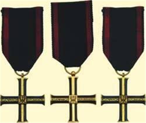 Lot of Three; breast badges, different versions; diam.: 39,6; 40,5; 40,7 mm; one with enamelled inscription and eagle, the second with toned -, the third only engraved; all bronze gilt, partially enamelled, polished, three different types of suspension loops! All with original ribbons. Excellent design and quality!