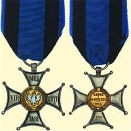 Silver Cross (5th class) - Type 1918-1939; breast badge, bronze silver plated, medallions gilt, partially enamelled, heavy one part version, with stamped number on reverse (267), with new ribbon. Together with small memo paper with handwritten notice "Bronislaw Antoni Marian Noel por. 4. d. a. k. Nr. 267 (107)". Small signs of wearing.
