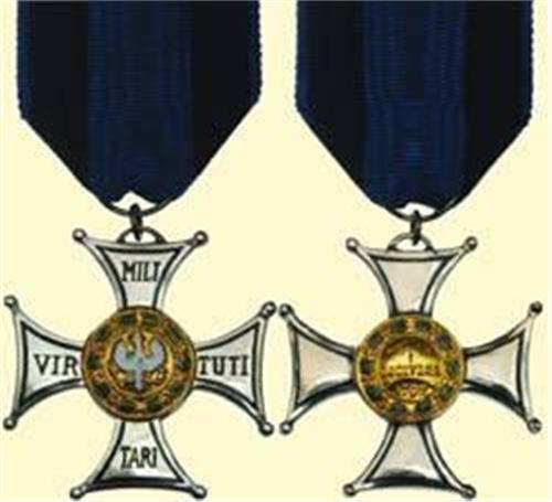 Silver Cross (5th class) - Type 1918-1939; breast badge, bronze silver plated and polished, separately mounted medallions (gilt), partially enamelled, with Spink-type loop, double ring suspension and ribbon with pin bar. Probably exile-version of "SPINK&Son Ltd...London". Very fine quality and condition! Tiny hole in enamel of white eagle (production flaw).
