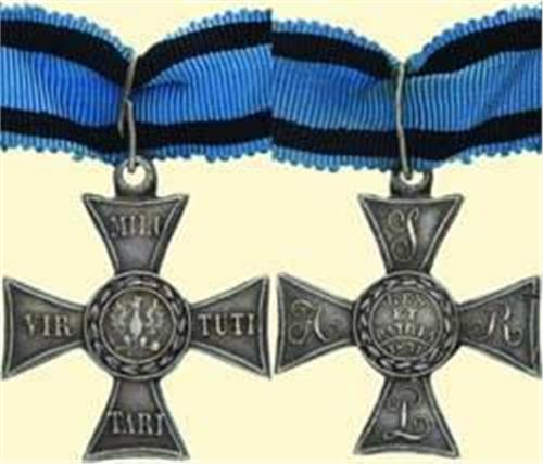 Silver Soldiers Cross - Russian Type 1831; breast badge, silver, one part version, diam.: 29,5 mm, with fixed loop and new ribbon. Small signs of wearing, small edge knock. Fine condition!