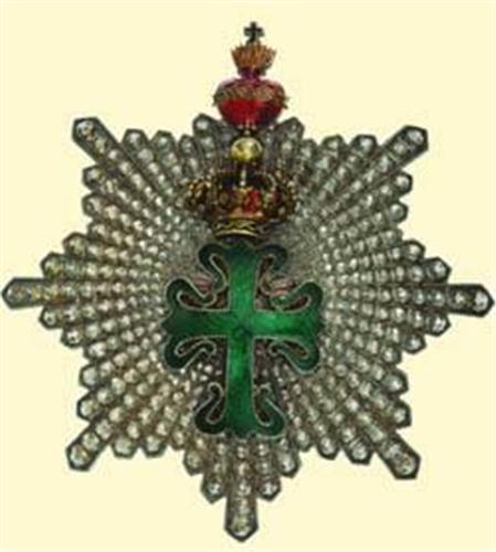 Grand Cross Breast Star; silver brilliant cut, with silver gilt and enamelled superimposed order's badge and detailed covered crown and gold enamelled heart of Christ on top; strong pin on reverse, Portuguese hallmarks, maker's mark "Frederico G. Da Costa...Lisboa". Very fine old quality and condition, only one small enamel damage in green enamels.