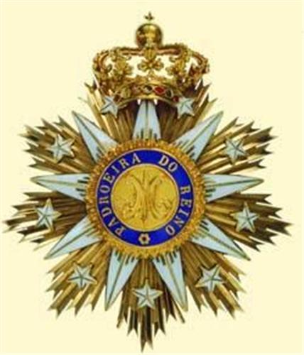 Grand Cross Breast Star; gold, superimposed parts enamelled, multipart construction, diam.: ca. 68 mm, weight 44 gramme; thin double-pin on reverse, maker's mark "SOUZA...", Portugese hallmark and French owl-mark. Suberb quality and excellent condition! In gold rare!