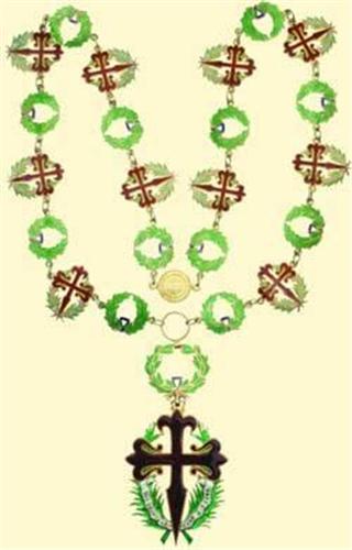 Order's Chain for Grand Cross, Commander or Officer; long silver gilt chain with large order's badge, suspension wreath and twentytwo alternating links, all obverse enamelled, the ending link with maker's mark "Frederico Costa...Lisboa", Portugese hallmarks, all parts on reverse blank. Excellent new quality and condition, very attractive!