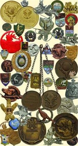 Lot of 46 European hunting and fishing medals and pin badges. Among them are awards for hunting (including some from the Second World War and earlier), Hunting-Fishing Associations, National Parks, State Organizations, Shooting Contests etc. Some of the pieces are enamelled. Interesting group!