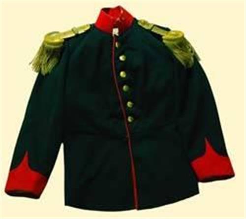 Underlieutenant's parade tunic by "KUPFLER and KOPLER", Bucharest, dates to before 1900, with gilt metal fringes on epaulettes. Very rare uniform in reasonable condition.