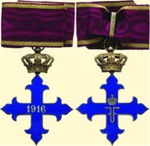 Neck Badge, silver gilt, hallmarked, both sides blue enamelled, obverse with Ferdinand Ist cipher, reverse with "1916", with original suspension loop and original ribbon. Extremely rare model, the 2nd class first model was awarded only 4 times. Probably one of the rarest Romanian military orders, never sold in a public sale!