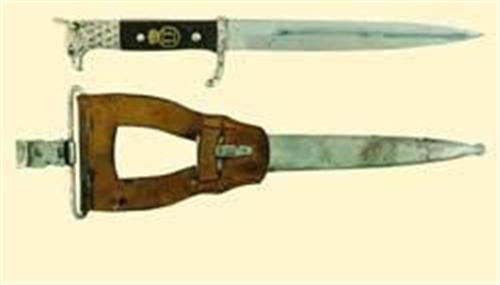 Officer's parade dagger, blade by "SOLLINGEN', of WWII date. Carol 2's cipher eagle's head and brown handle with leather frog. Beautiful condition and scarce model.