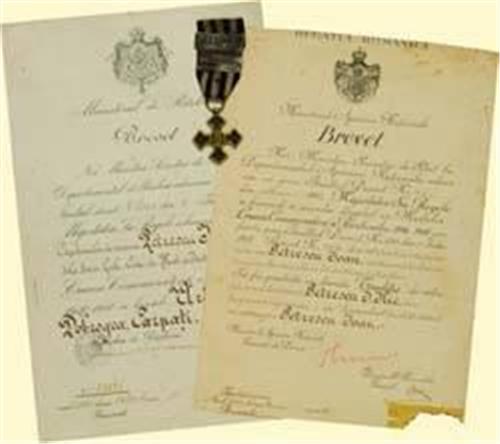 For his son, Lt. Petrescu Ilie: The "TRADITIE" bar, together with awarding document dated May 14th, 1940. Extremely rare group! The "TRADITIE" bar and awarding document are of the highest rarity!