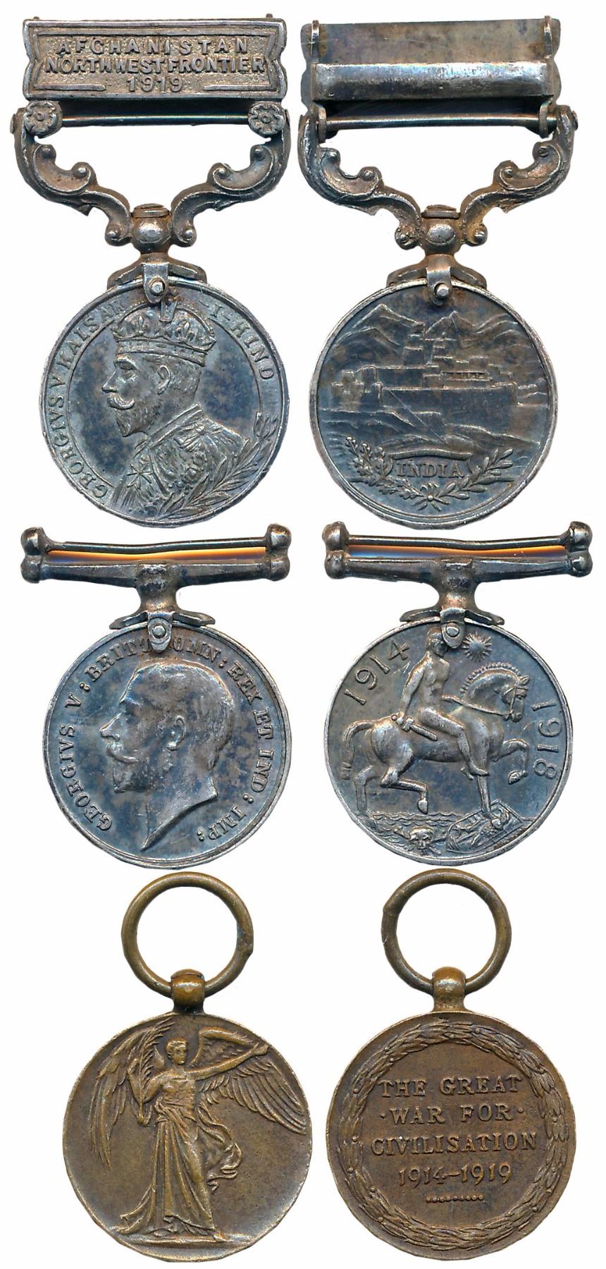 Miniature British War Medal (3), Silver (2), George V, India General Service Medal, 1914-18 & George V, Kaiser-i-Hind, Afghanistan North West Frontier 1919 bar & Bronze (1), Victory Medal, Yellow Bronze. Very fine. 3 Medals.