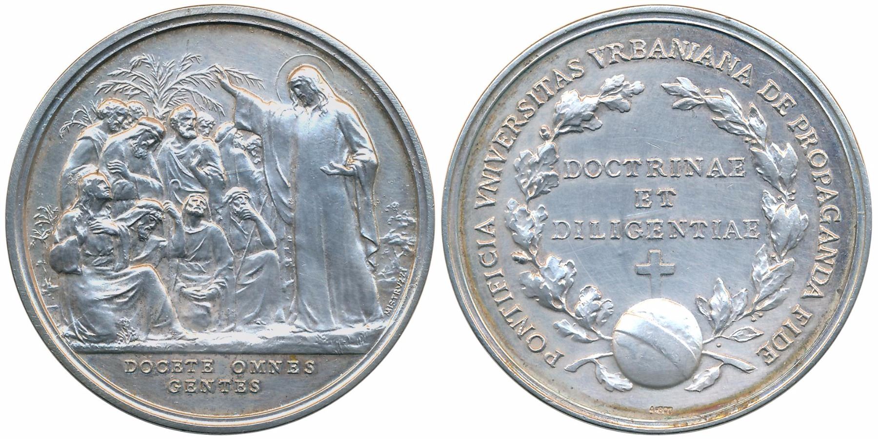 Italy Rome, Silver Medal, 48.47g, Obv: Christ Preaching to the Apostles, Rev: "Pontificia vniversitas vrbaniana de propaganda fide" legend around. Very fine.