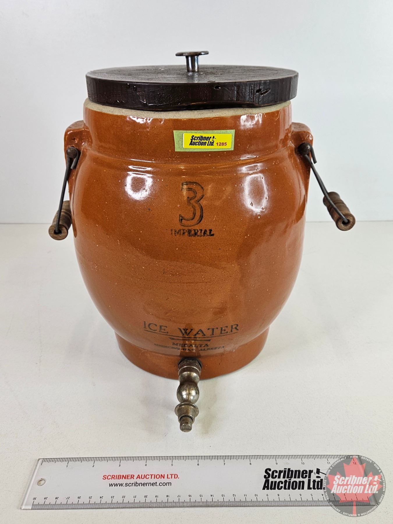 Medalta 3 Gal Imperial ICE WATER Crock with Spigot (Custom Wood Lid)