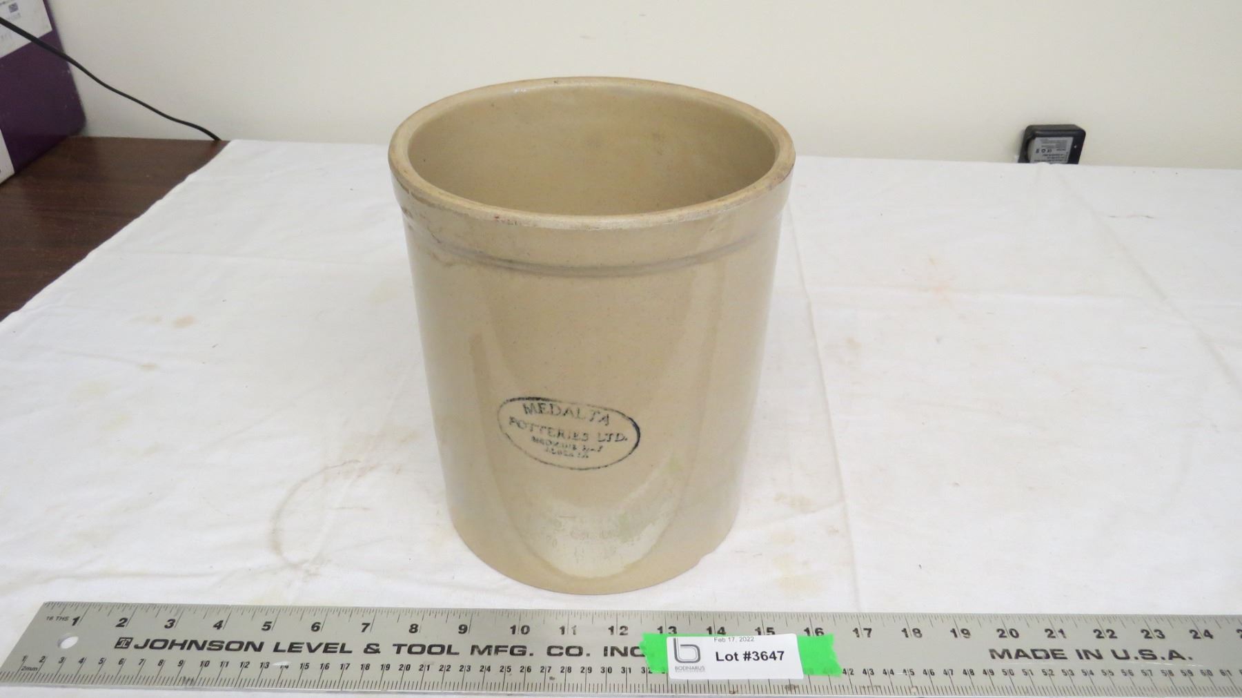 Medalta Potteries stoneware crock - 9" tall - small chip on bottom