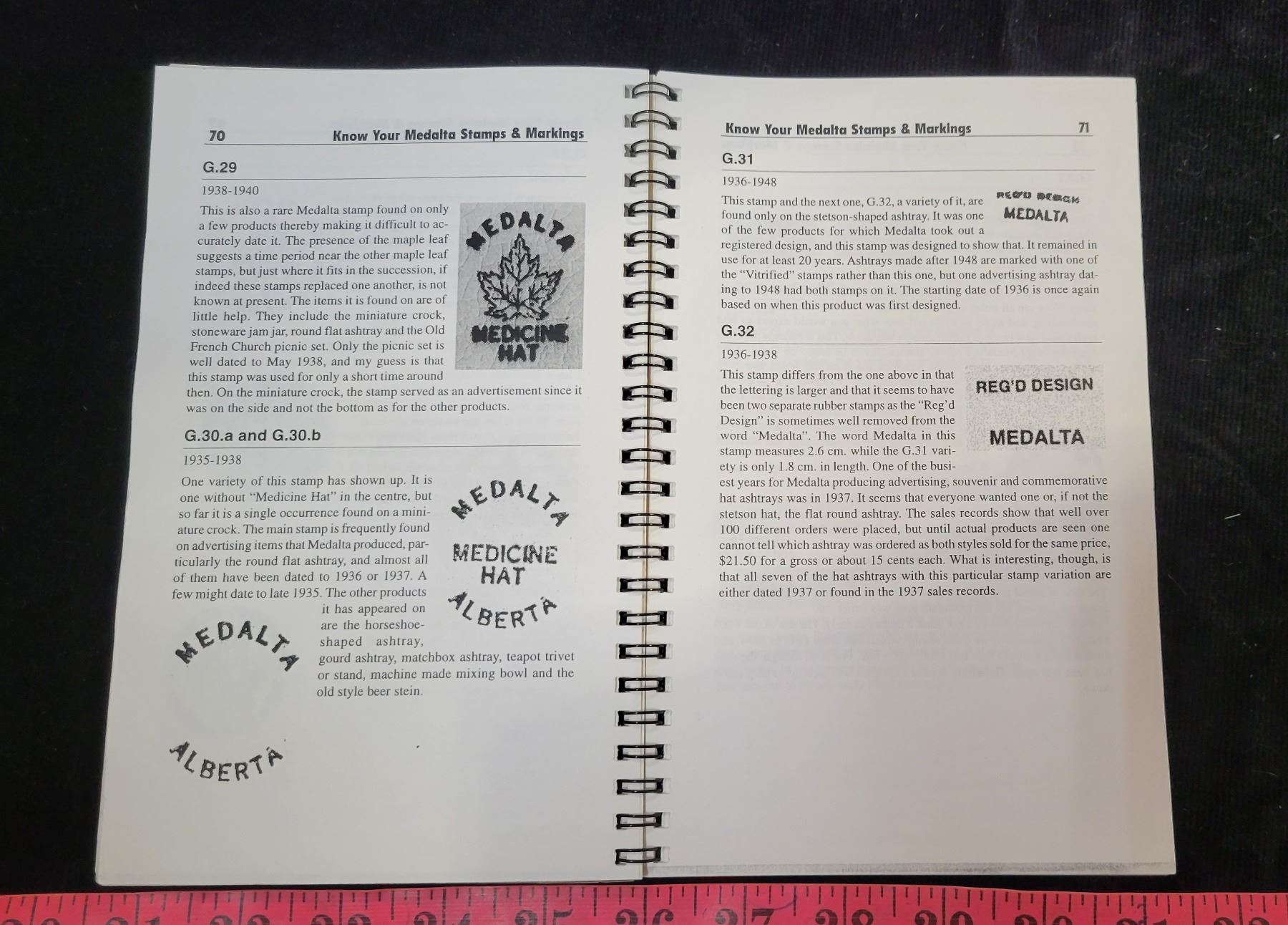 Medalta resource books and Medalta lamp base
